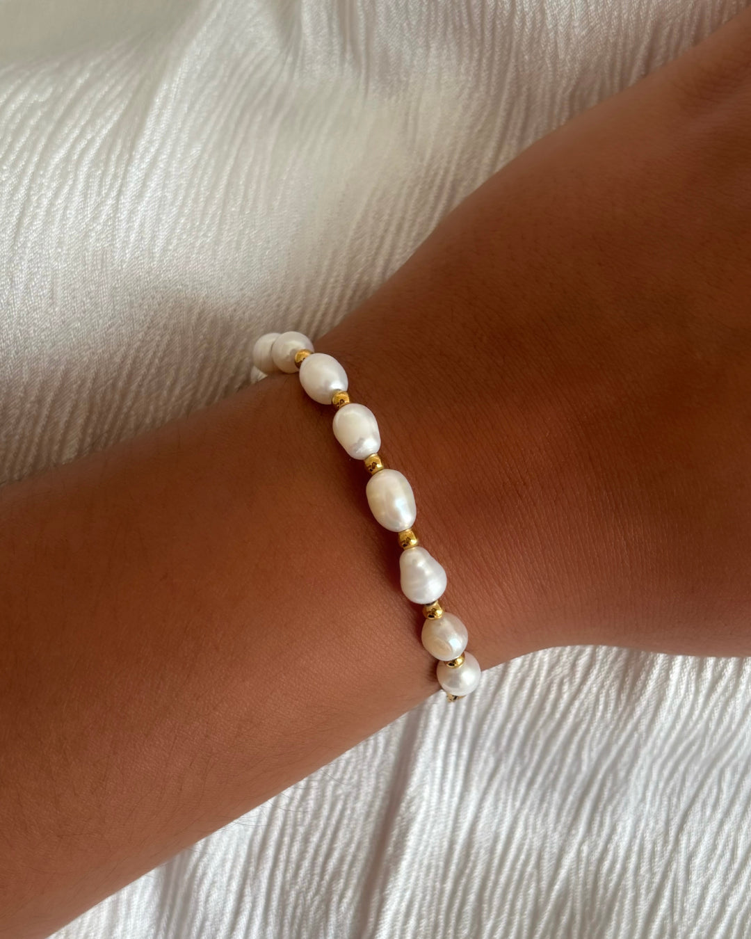 Material: 18k Gold Plated Stainless Steel, Freshwater Pearls